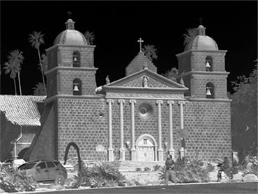 A historic building glows in this thermal image taken near Raytheon's Goleta, Calif. laboratories.